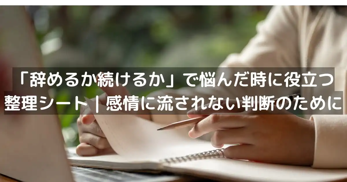 本記事では、「辞める・続ける」の正解を提示するのではなく、あなたが自分自身で納得できる答えを導き出すための『整理シート』の活用法をご紹介します。